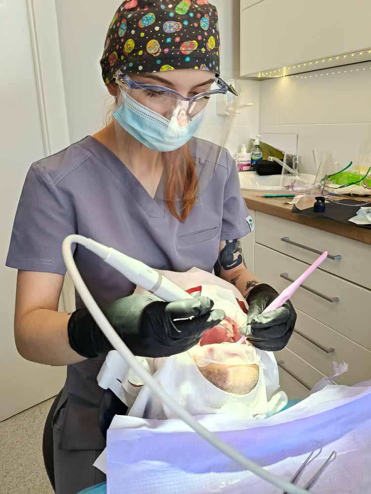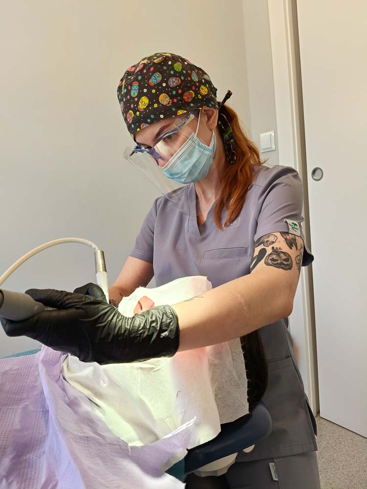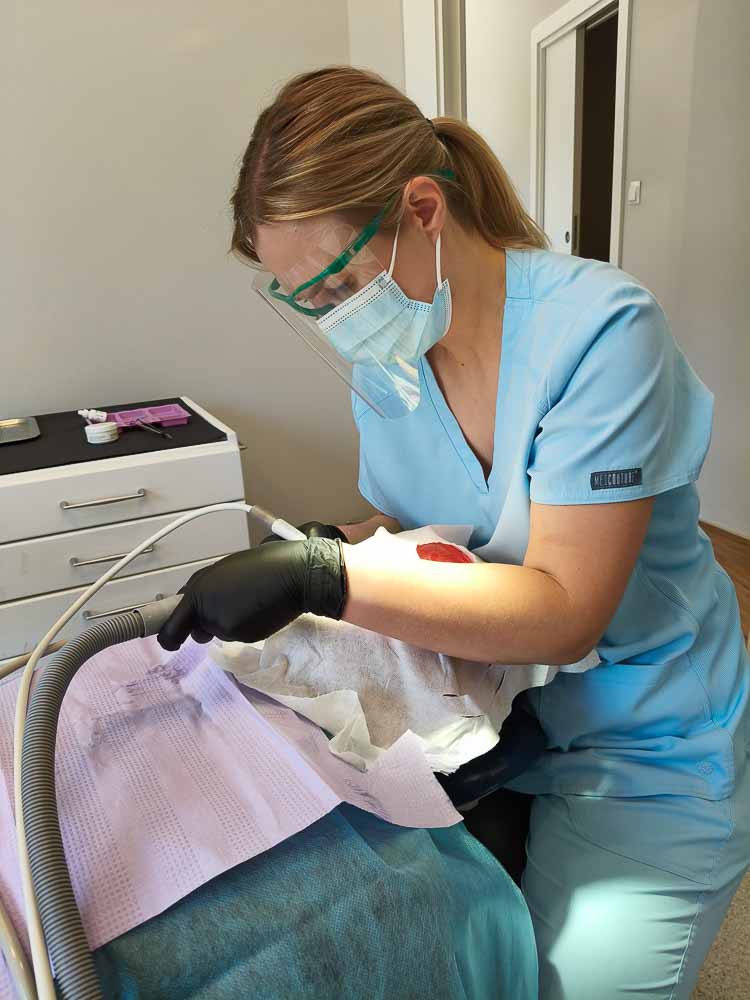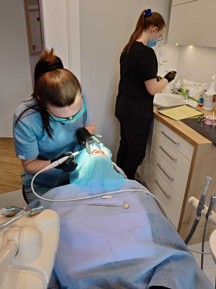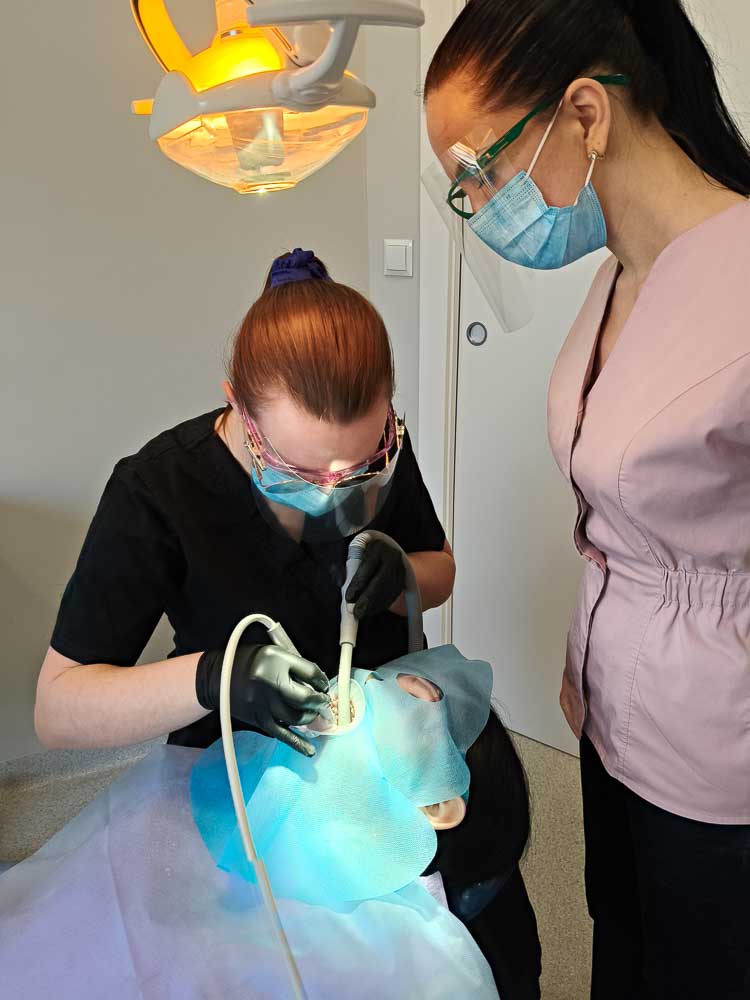 Niedawno miałam możliwość uczestniczyć w szkoleniu, które prowadziła Pani Angela Chudzik. Bardzo polecam wszystkim higienistkom, które skończyły szkołę na tym kierunku i chcą zyskać cenne doświadczenie. Szkolenie odbywa się maksymalnie w cztery osoby, co jest dużym atutem. Dzięki temu Pani Angela może każdemu poświęcić odpowiednią ilość czasu. Szkolenie składało się z części teoretycznej i praktycznej. Obie były bardzo interesujące. Miałam możliwość skorzystania z bardzo nowoczesnego urządzenia stomatologicznego , łączącego w sobie funkcje skalera ultradźwiękowego i piaskarki.